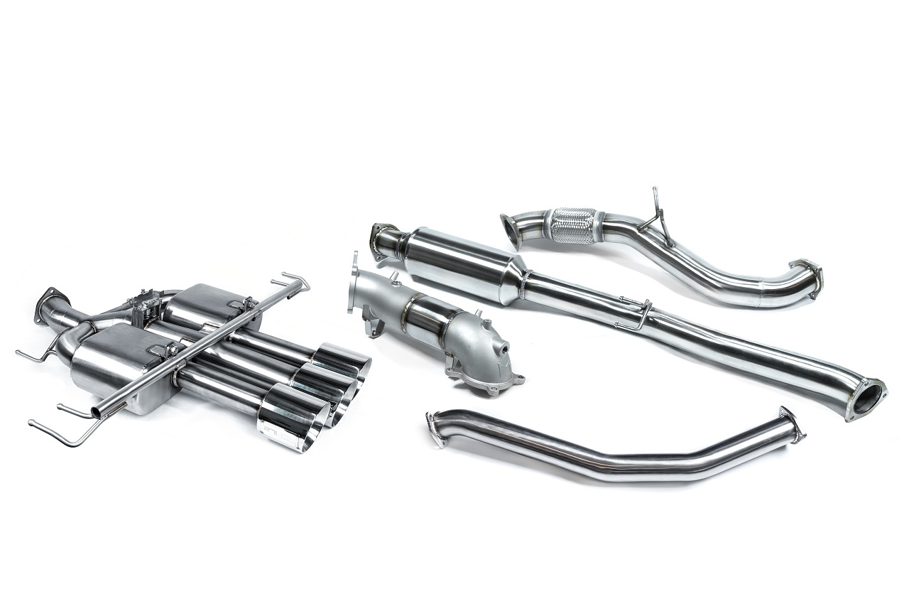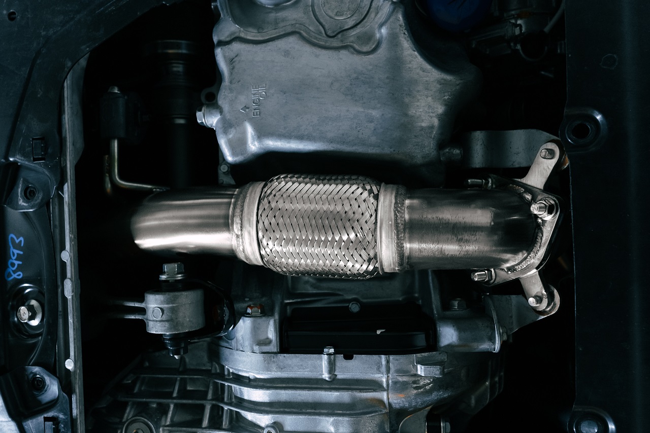 This 27WON exhaust system comes with a full 80mm frontpipe no matter which version you go with . We found it important to maximize the benefit of an upgraded exhaust and you achieve this by removing as much of the restrictive stock exhaust as possible. That means a full replacement frontpipe is included with every system.
